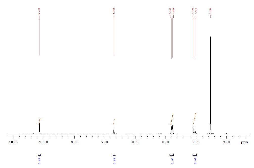 NMR of 2,3,8,9,14,15-hexa(4-formylphenyl)diquinoxalino CAS 2307218-00-2