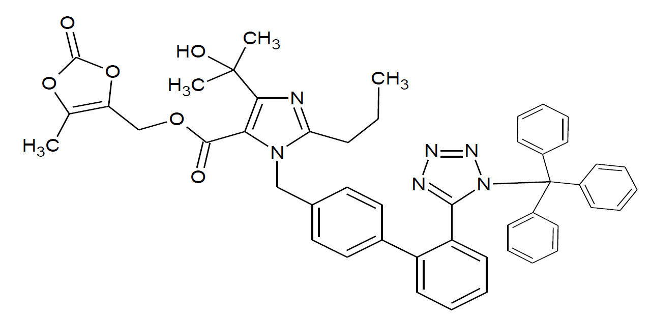 4-(1-Hydroxy-1-methylethyl)-2-propyl-1-[[2′- [2-(triphenylmethyl)-1H-tetrazol-5-yl][1,1′- biphenyl]-4-yl] methyl]-1H-imidazole-5- carboxylic acid (5-methyl-2-oxo-1,3-dioxol-4- yl)methyl ester