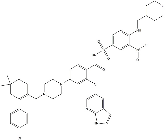 ABT-199 ;ABT199,GDC0199 ;GDC0199 ;GDC0199 ;GDC-0199;4-[4-[[2-(4-Chlorophenyl)-4,4-dimethyl-1-cyclohexen-1-yl]methyl]-1-piperazinyl]-N-[[3-nitro-4-[[(tetrahydro-2H-pyran-4-yl)methyl]amino]phenyl]sulfonyl]-2-(1H-pyrrolo[2,3-b]pyridin-5-yloxy)-benzamide;Benzamide,4-[4-[[2-(4-chlorophenyl)-4,4-dimethyl-1-cyclohexen-1-yl]methyl]-1-piperazinyl]-N-[[3-nitro-4-[[(tetrahydro-2H-pyran-4-yl)methyl]amino]phenyl]sulfonyl]-2-(1H-pyrrolo[2,3-b]pyridin-5-yloxy)-;4-[4-[[2-(4-Chlorophenyl)-4,4-dimethyl-1-cyclohexen-1-yl]methyl]-1-piperazinyl]-N-[[3-nitro-4-[[(tetrahydro-2H-pyran-4-yl)methyl]amino]phenyl]sulfonyl]-2-(1H-pyrrolo[2,3-b]pyridin-5-yloxy)-benzamideABT-199(GDC-0199)