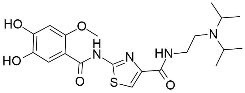 2-(4,5-dihydroxy-2-methoxybenzamido)-N-(2-(diisopropylamino)ethyl)thiazole-4-carboxamide