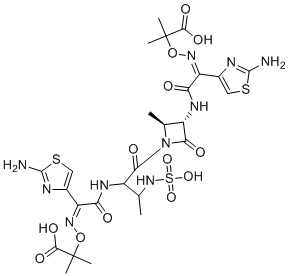 3S)-1-(2-((Z)-2-(2-aminothiazol-4-yl)-2- (((2-carboxypropan-2-yl)oxy)imino)acetamido)-3-(sulfoamino)butanoyl)-2- methyl-4-oxoazetidin-3-yl)amino)-2-oxoethylidene)amino)oxy)-2- methylpropanoic acid