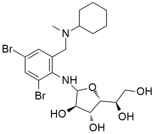 5R)-2-((2,4-dibromo-6-((cyclohexyl(methyl)amino)methyl)phenyl)amino)-5-((R)-1,2-dihydroxyethyl)tetrahydrofuran-3,4-diol