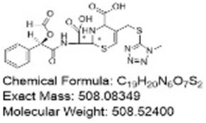 2-(carboxy((R)-2-(formyloxy)-2-phenylacetamido)methyl) -5-(((1-methyl-1H-tetrazol-5-yl)thio)methyl)-3,4-dihydro-2H-1,3-thiazine-4-carboxylic acid