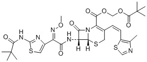 7R)-7-((Z)-2-(methoxyimino)-2-(2-pivalamidothiazol-4-yl)acetamido)-3-((Z)-2-(4-methylthiazol-5-yl)vinyl)-8-oxo-5-thia-1-azabicyclo[4.2.0]oct-2-ene-2-carboxylate