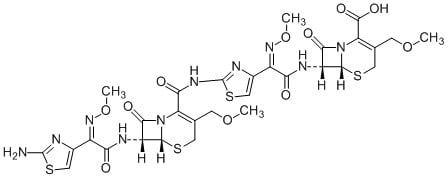 7R)-7-((Z)-2-(2-aminothiazol-4-yl)-2-(methoxyimino)acetamido)-3-(methoxymethyl)-8-oxo-5-thia-1-azabicyclo[4.2.0]oct-2-ene-2-carboxamido)thiazol-4-yl)-2- (methoxyimino)acetamido)-3-(methoxymethyl)-8-oxo-5-thia-1-azabicyclo[4.2.0]oct-2-ene-2-carboxylic acid