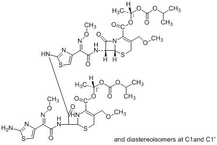mixture of the diastereoisomers of (RS)-1-((isopropoxycarbonyl)oxy)ethyl (6R,7R)-7-((Z)-2-(2-(2-((Z)-2-(2-aminothiazol-4-yl)-2-(methoxyimino)acetamido)-2-(4-(((RS)-1-((isopropoxycarbonyl)oxy)ethoxy)carbonyl)-5-(methoxymethyl)-3,6-dihydro-2H-1,3-thiazin-2-yl)acetamido)thiazol-4-yl)-2-(methoxyimino)acetamido)-3-(methoxymethyl)-8-oxo-5-thia-1-azabicyclo[4.2.0]oct-2-ene-2-carboxylate