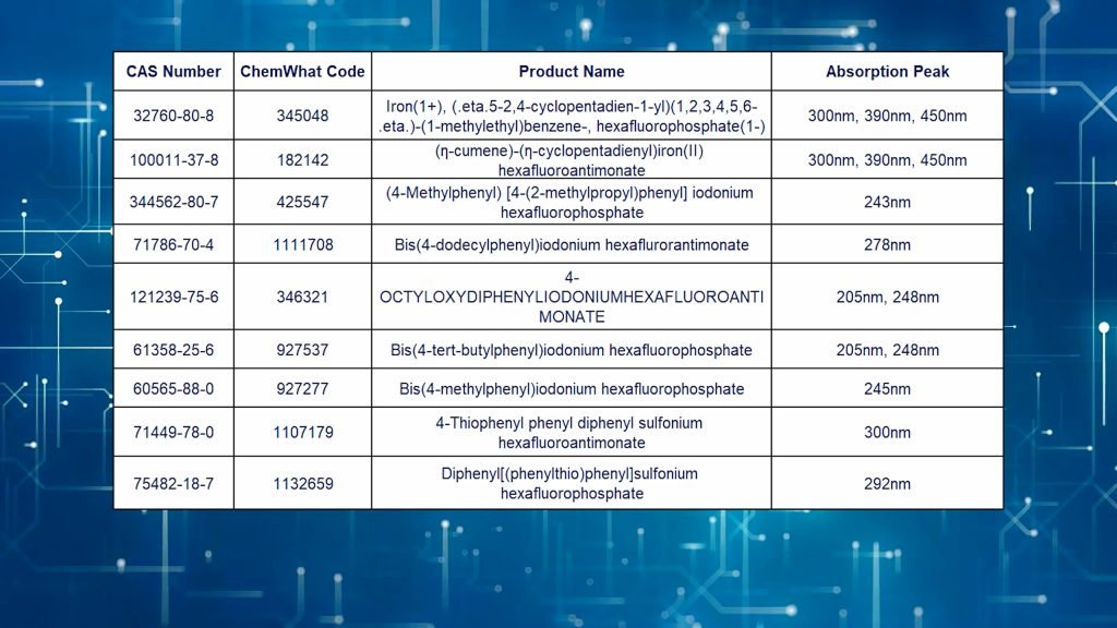 Targeting high-value applications, ChemWhat’s cationic initiators stand out for their high temperature resistance, strong adhesion, and no oxygen inhibition — overcoming conventional curing limitations :