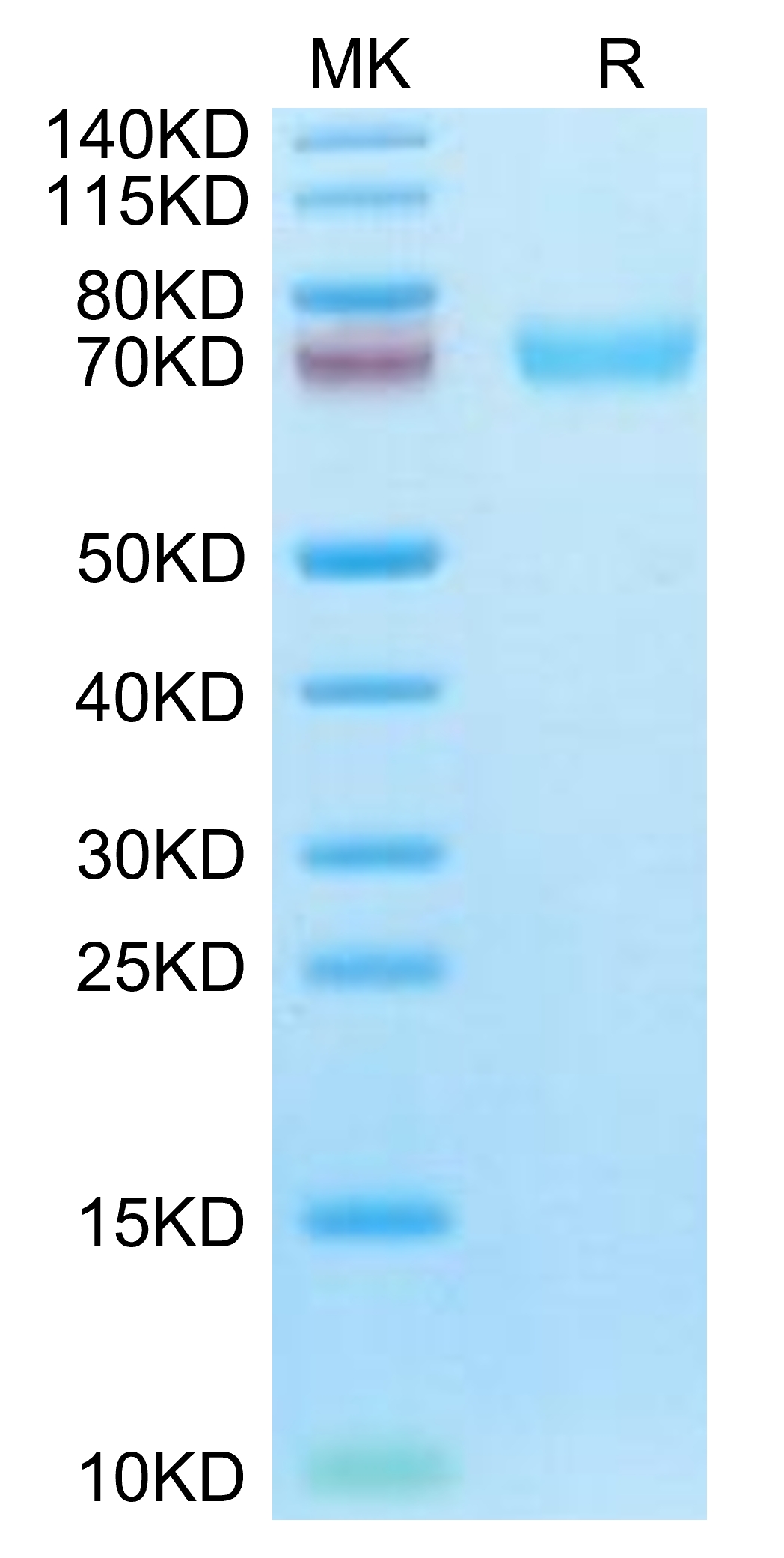 Cynomolgus LILRA6 on Tris-Bis PAGE under reduced condition. The purity is greater than 95%.