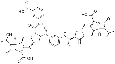 6S)-2-carboxy-6-((R)-1-hydroxyethyl)-4-methyl-7-oxo-1-azabicyclo[3.2.0]hept-2-en-3-yl)thio)-2-((3-carboxyphenyl)carbamoyl)pyrrolidine-1-carbonyl)phenyl)carbamoyl)pyrrolidin-3-yl)thio)-6-((R)-1-hydroxyethyl)-4-methyl-7-oxo-1-azabicyclo[3.2.0]hept-2-ene-2-carboxylic acid