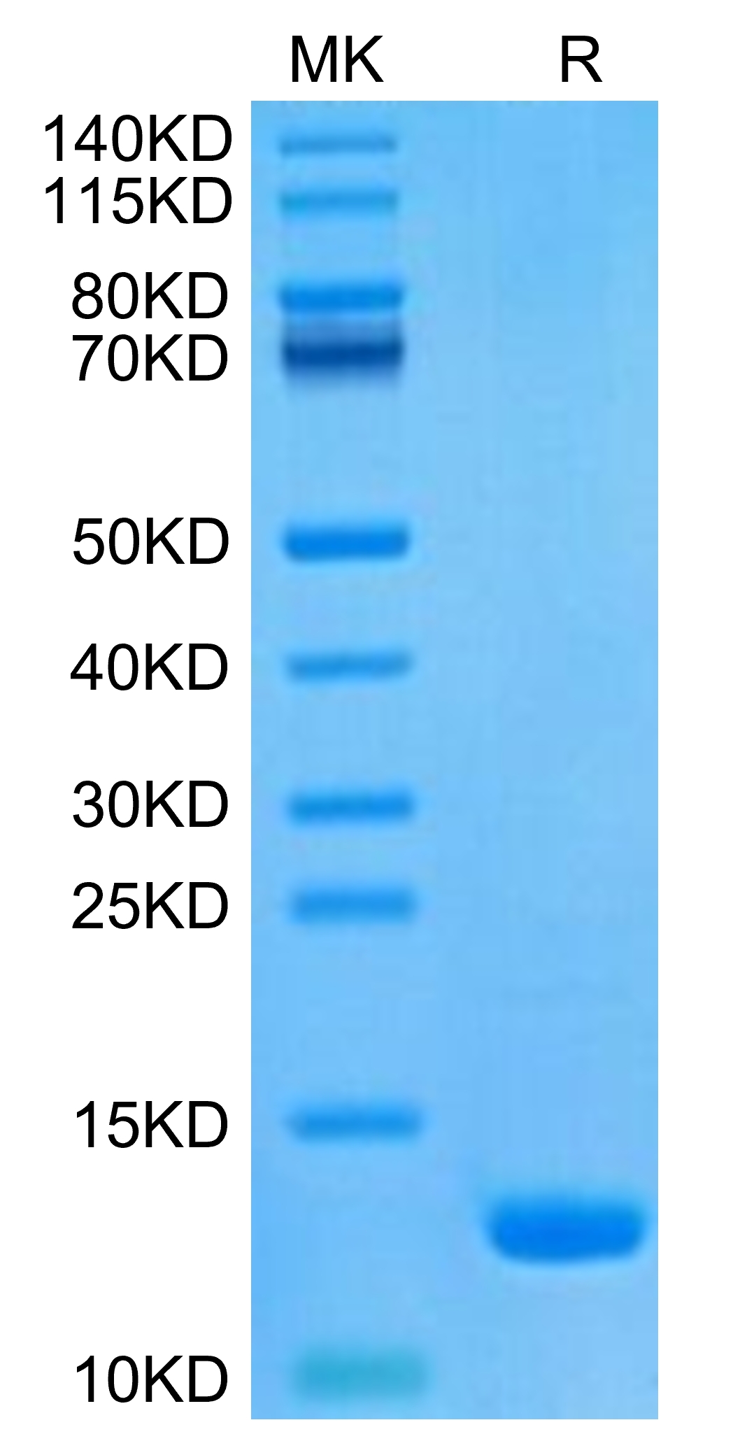 Human CCL8 on Tris-Bis PAGE under reduced condition. The purity is greater than 95%.