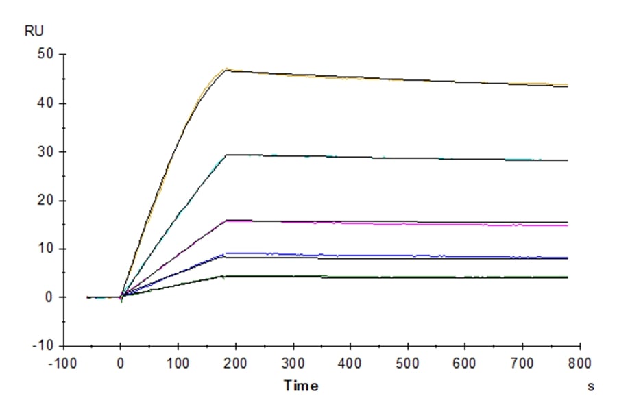 Immobilized Human GDF15, His Tag at 0.5ug/ml (100ul/well) on the plate. Dose response curve for Human GFRAL, hFc Tag with the EC50 of 15ng/ml determined by ELISA (QC Test). The affinity constant of 0.014 nM as determined in SPR assay (Biacore T200). See testing image for detail.