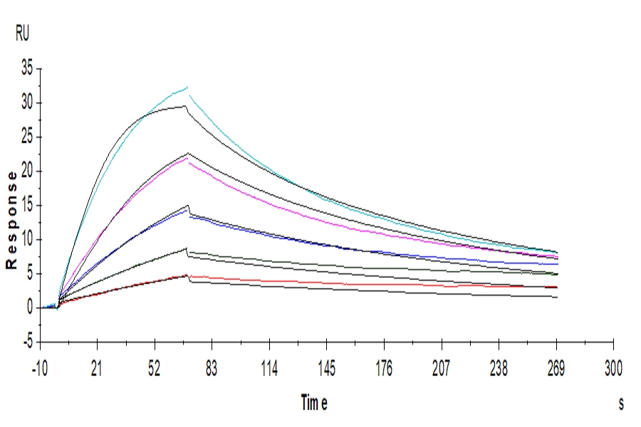 Human GM-CSF R alpha , His Tag captured on CM5 Chip via anti-His antibody can bind Human GM-CSF, No Tag with an affinity constant of 0.79nM as determined in SPR assay (Biacore T200).