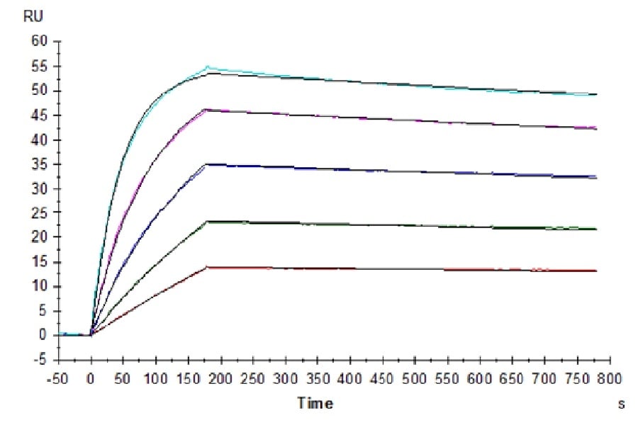 Human IL-10 R alpha, His Tag immobilized on CM5 Chip can bind Human IL-10, His Tag with an affinity constant of 0.13 nM as determined in SPR assay (Biacore T200).