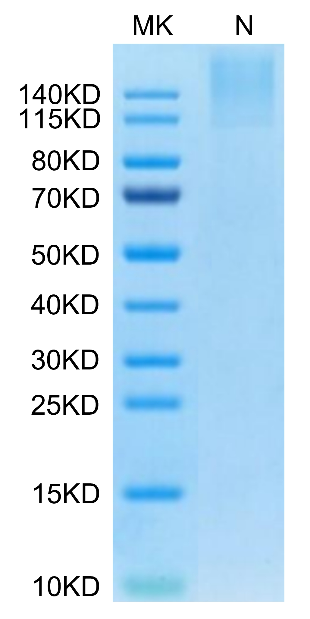 Human MAGE-A3 (HLA-A*24:02) Tetramer on Tris-Bis PAGE under Non reducing (N) condition. The purity is greater than 95%.