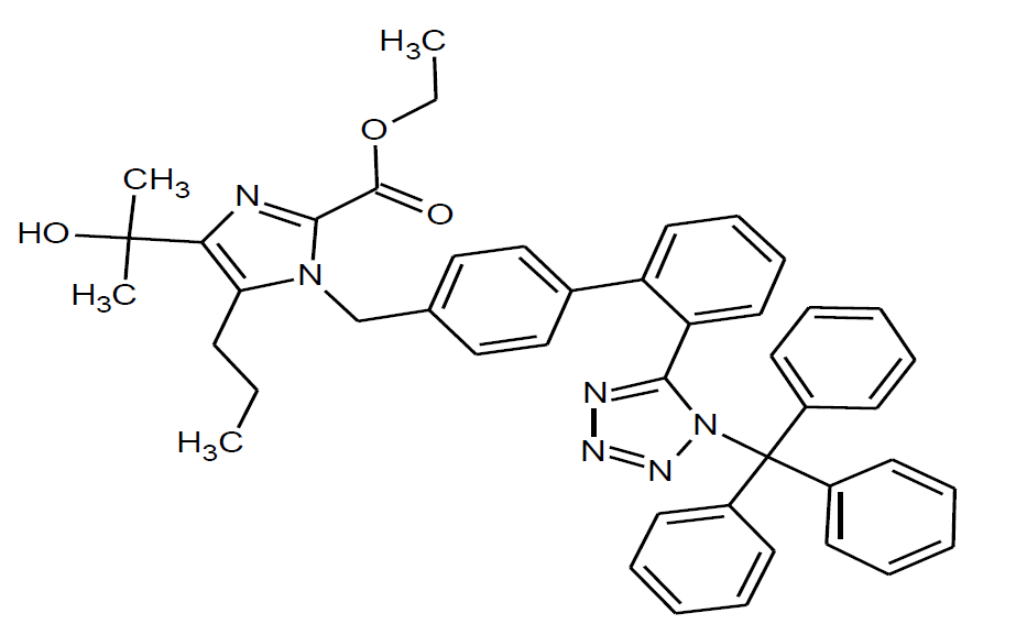 Ethyl-4-(1-hydroxy-1-methylethyl)-2-propyl- 1-{4-[2-(trityl tetrazol-5yl)- phenyl]phenyl}methyl imidazole-5- carboxylate