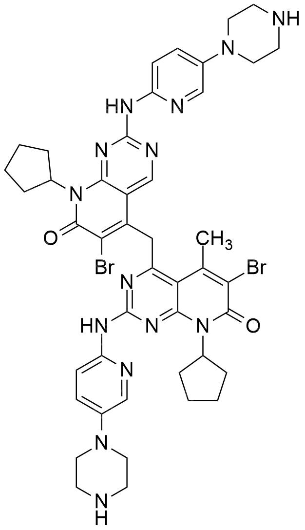 6-bromo-4-((6-bromo-8-cyclopentyl-7-oxo-2-((5-(piperazin-1-yl)pyridin-2-yl)amino)-7,8-dihydropyrido[2,3-d]pyrimidin-5-yl)methyl)-8-cyclopentyl-5-methyl-2-((5-(piperazin-1-yl)pyridin-2-yl)amino)pyrido[2,3-d]pyrimidin-7(