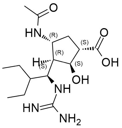 4R)-4-acetamido-3-((S)-2-ethyl-1-guanidinobutyl)-2-hydroxycyclopentanecarboxylic acid