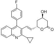 PITAVAS­TATIN­LAC­TONE;(4R,6S,E)-6-[2-[2-Cyclopropyl-4-(4-fluorophenyl)quinolin-3-yl]vinyl]tetrahydro-4-hydroxypyran-2-one;PitavastatincalciuMinterMediatesto5,(4R,6S,E)-6-[2-cyclopropyl-4-(4-fluorophenyl)-3-quinoline-yl-vinyl]-4-hydroxy-3,4,5,6-tetrahydro-2H-pyran-2-one;PitavastatinLactoneDISCONTINUED;PitavastatincalciumimpurityD;(4R,6S)-6-((E)-2-(2-cyclopropyl-4-(4-fluorophenyl)quinolin-3-yl)vinyl)-4-hydroxytetrahydro-2H-pyran-2-one;PitavastatinImpurityA