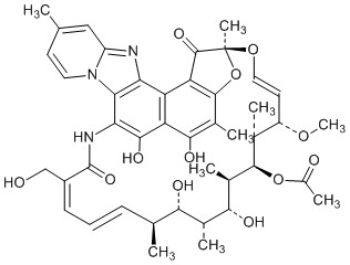 28E)-5,6,21,23-trihydroxy-16-(hydroxymethyl)-27-methoxy-2,4,11,20,22,24,26-heptamethyl-1,15-dioxo-1,2-dihydro-2,7-(epoxypentadeca[1,11,13]trienoimino)[1]benzofuro-[4,5-e]pyrido[1,2-a]benzimidazol-25-yl acetate(16-desmethyl-16-(hydroxymethyl)rifaximin)