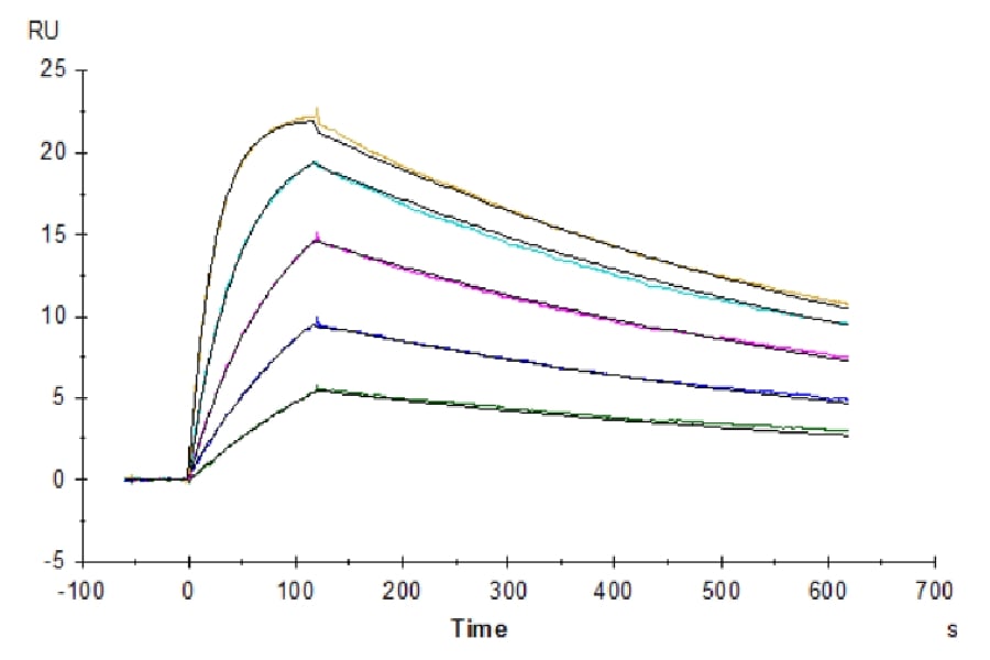 Human ACE2 captured on Protein A chip, can bind SARS-COV-2 Spike RBD (N501Y) , His Tag with an affinity constant of 1.74nM as determined in a SPR assay (Biacore T200).